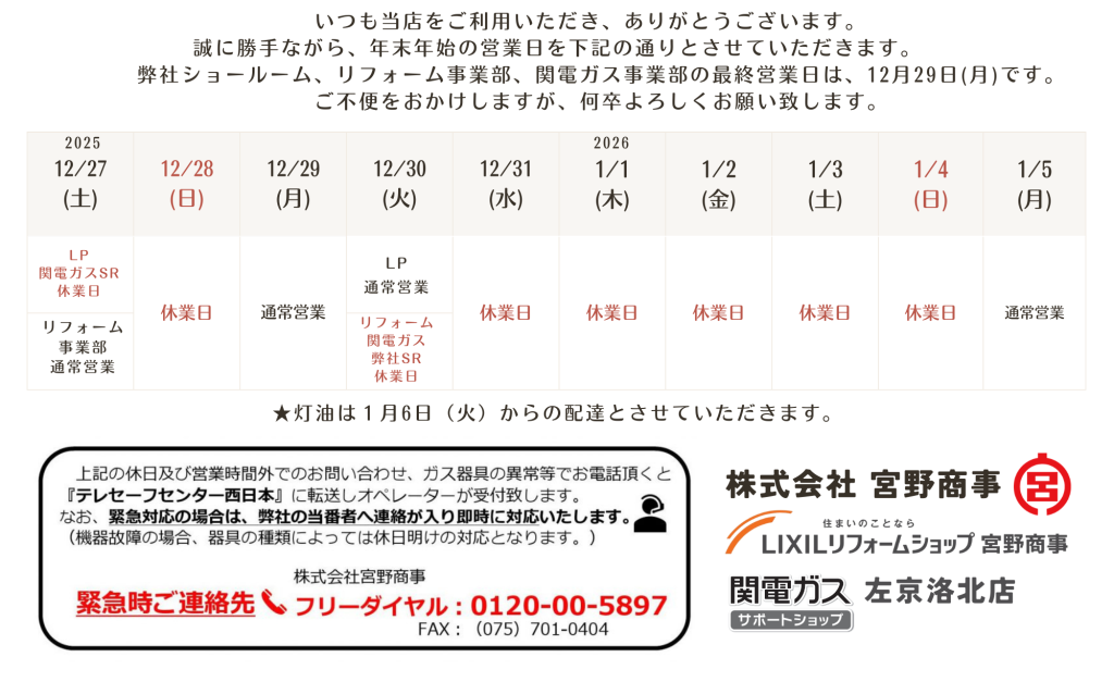 岩倉を中心とした地域の生活を見守って50年 これからの総合エネルギーを提案する株式会社宮野商事です。